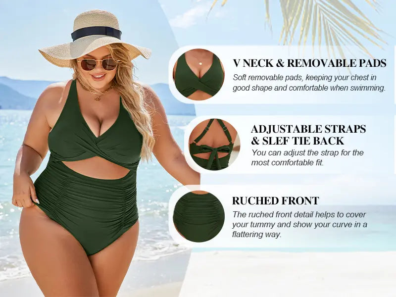 Looking for the perfect one-piece that hugs your curves, flattens your tummy, and turns heads on the beach? The CurveCove™ Ruched Cutout One-Piece is your summer must-have — vibrant, flattering, and fabulously supportive.